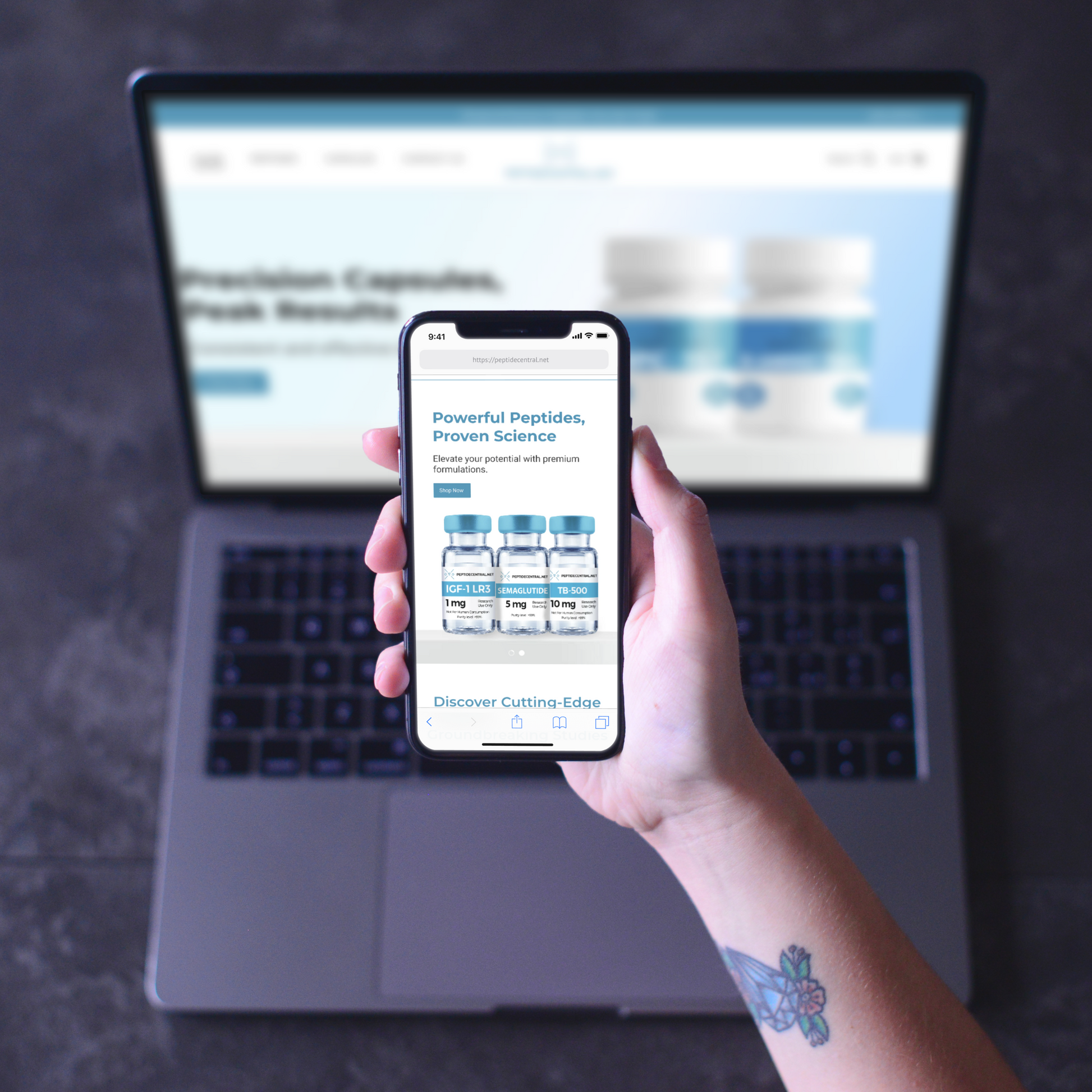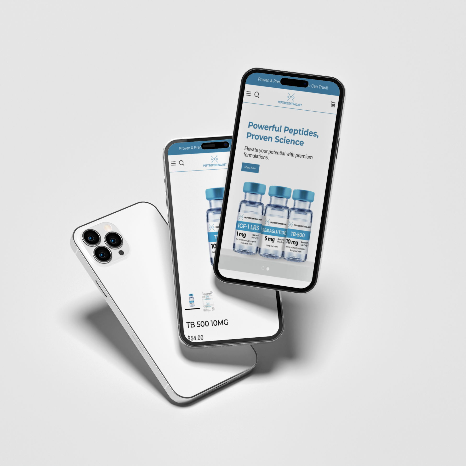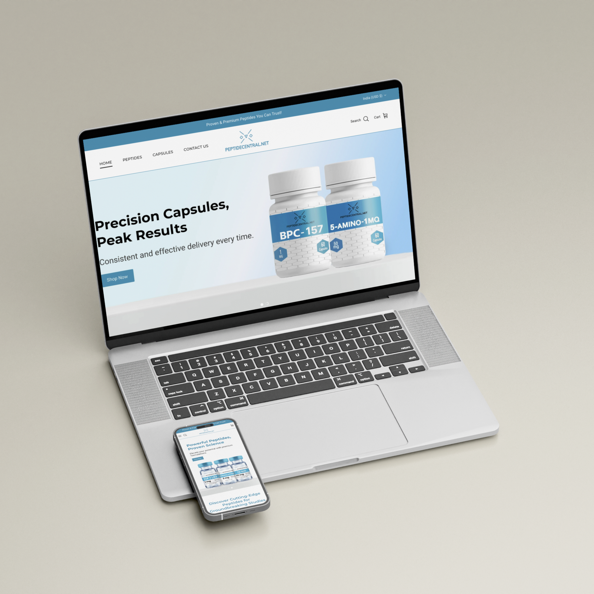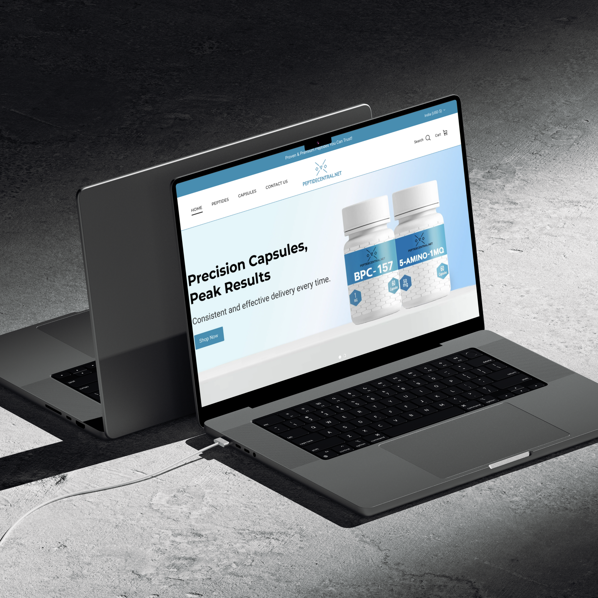 Applied PeptideCentral’s brand colors, logo, and secure checkout badges to create a consistent and trustworthy experience.